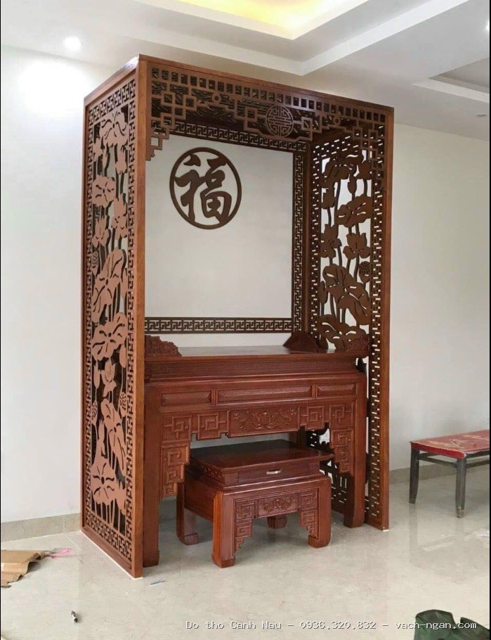Nghệ nhân Sơn Vũ thiết kế mẫu bàn thờ này đảm bảo sự tôn nghiêm (Lưu ý: Chúng tôi không kinh doanh vách ngăn).