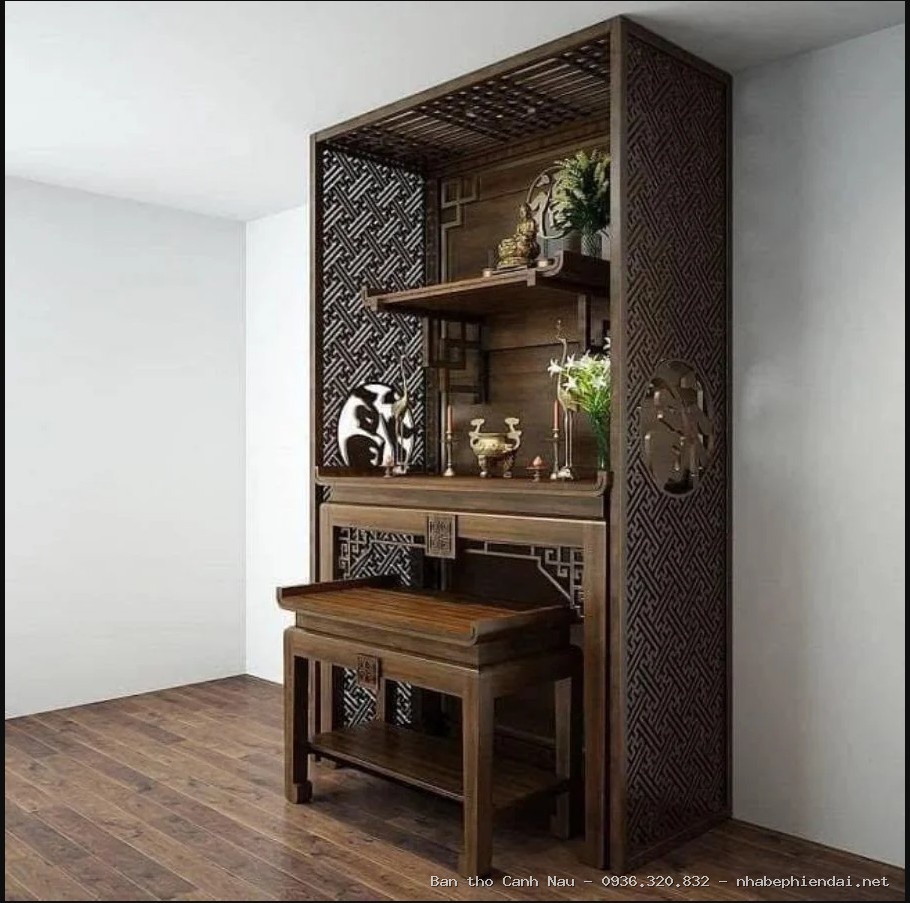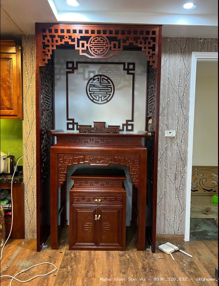 Nghệ nhân Sơn Vũ thiết kế mẫu bàn thờ này đảm bảo sự tôn nghiêm (Lưu ý: Chúng tôi không kinh doanh vách ngăn).