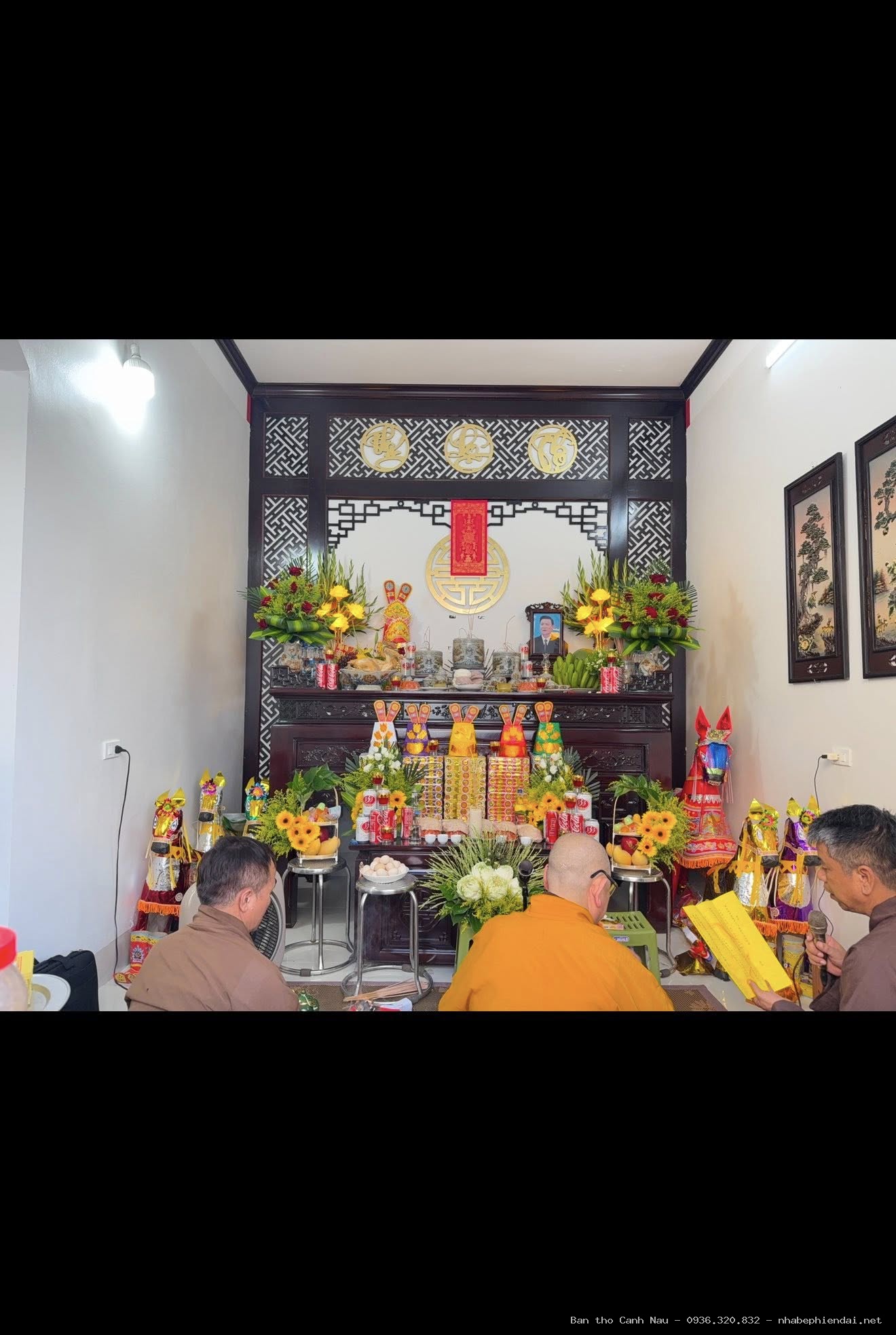 Nghệ nhân Sơn Vũ thiết kế mẫu bàn thờ này đảm bảo sự tôn nghiêm (Lưu ý: Chúng tôi không kinh doanh vách ngăn).