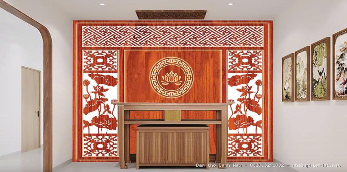 Nghệ nhân Sơn Vũ thiết kế mẫu bàn thờ này đảm bảo sự tôn nghiêm (Lưu ý: Chúng tôi không kinh doanh vách ngăn).