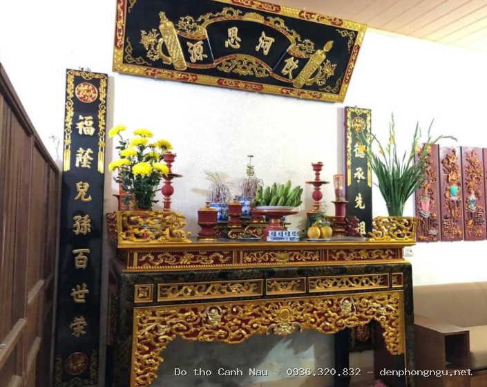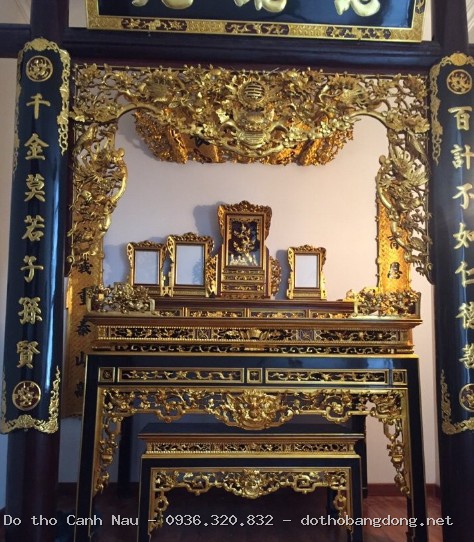 Công trình bàn thờ gỗ cao cấp được Nghệ nhân Sơn Vũ trực tiếp lắp đặt. Chúng tôi cam kết không làm vách ngăn, chỉ chuyên tâm vào đồ thờ tâm linh chất lượng cao.