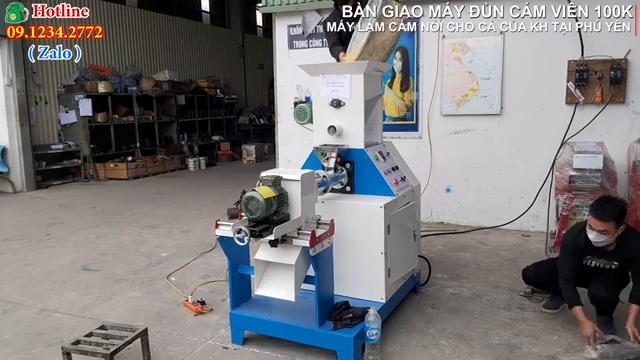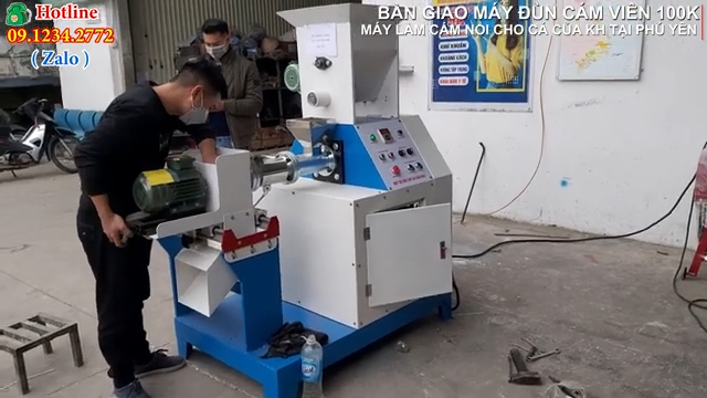 Dòng sản phẩm máy đùn viên thức ăn chăn nuôi 100kg chuyên dụng làm cám nổi cho cá, cám chín hoàn toàn cho lợn và cám hạt nhỏ cho tôm. Chúng tôi hiện đang thực hiện bàn giao máy cho khách hàng tại Phú Yên và sẽ hướng dẫn khách hàng cách vận hành máy trực tuyến.