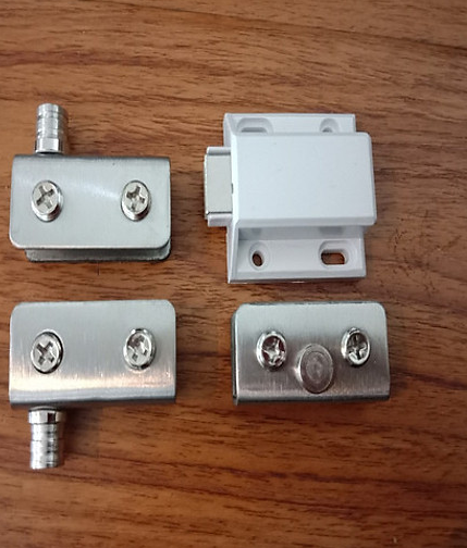 Dưới đây là báo giá một số loại bản lề kẹp kính inox, chốt nhấn mở đôi, màu trắng: