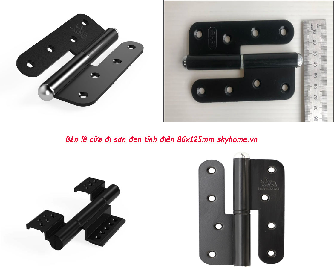 Dưới đây là thông số kỹ thuật của bản lề cửa đi sơn đen tĩnh điện 86x125mm: