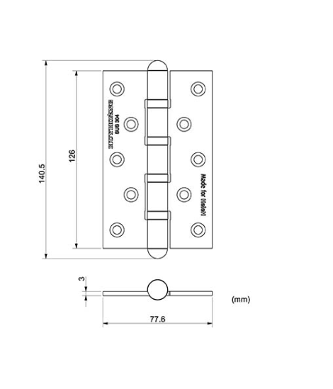 Dưới đây là một số thông số kỹ thuật của bản lề lá nhỏ 8x20mm: