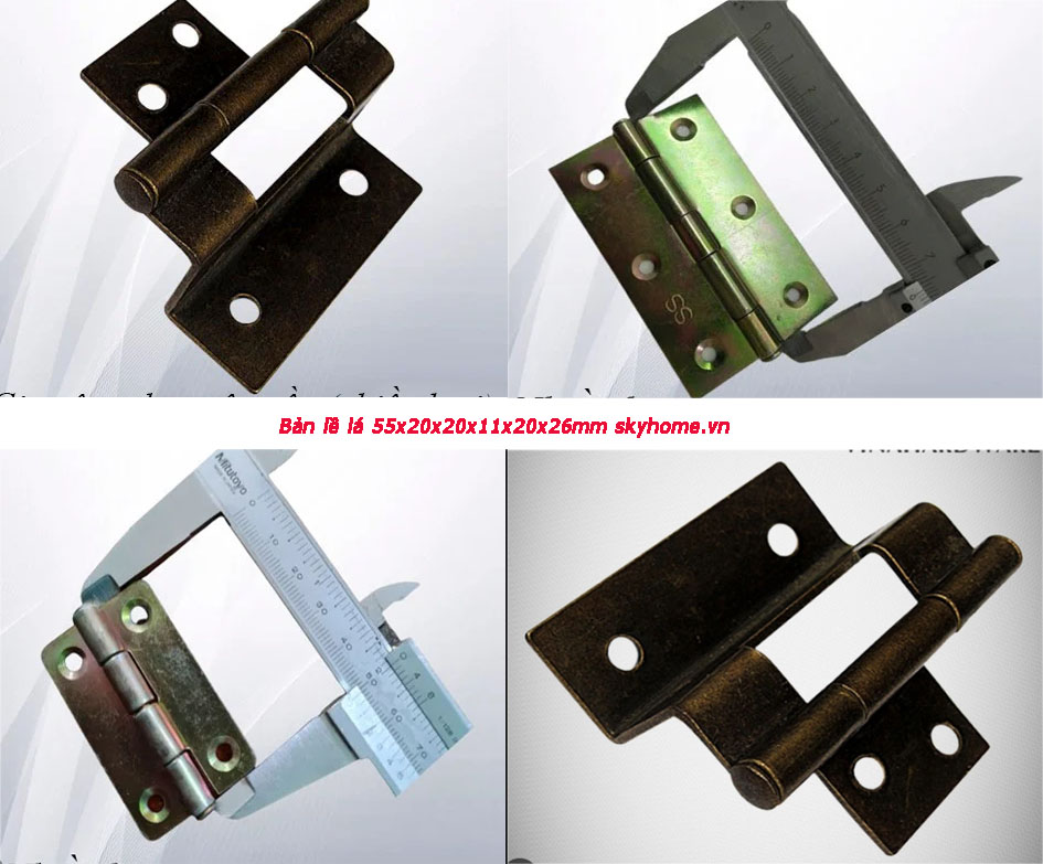 - Theo kích thước: Bản lề lá 55x20x20x11x20x26mm có kích thước là 55mm x 20mm x 20mm x 11mm x 20mm x 26mm.