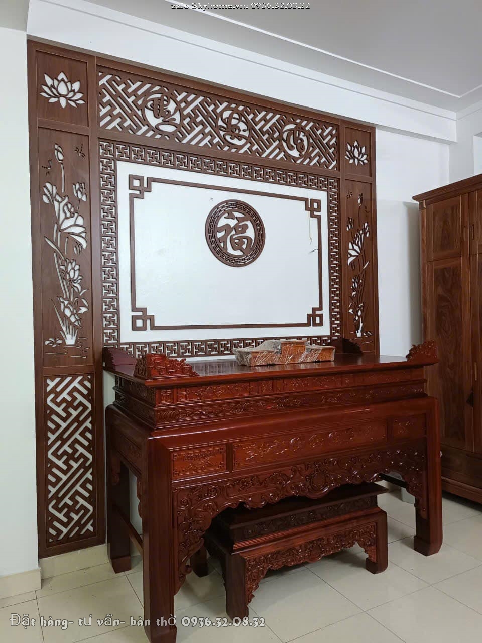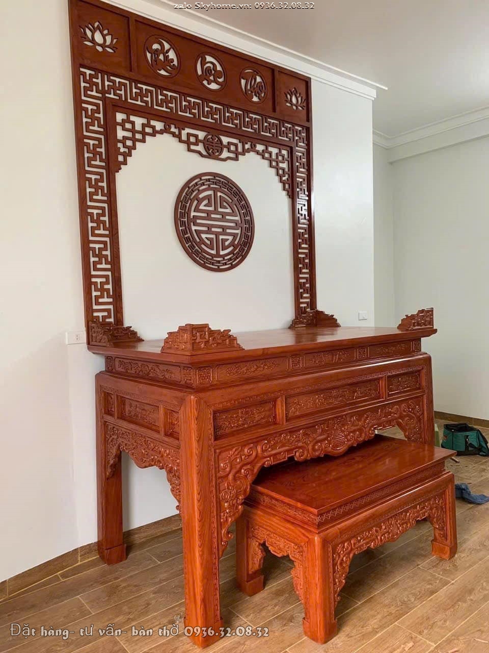- Mặt bàn thờ: Rất chắc chắn, giữ nguyên vân gỗ tự nhiên sau khi phun sơn, vừa đẹp vừa bền