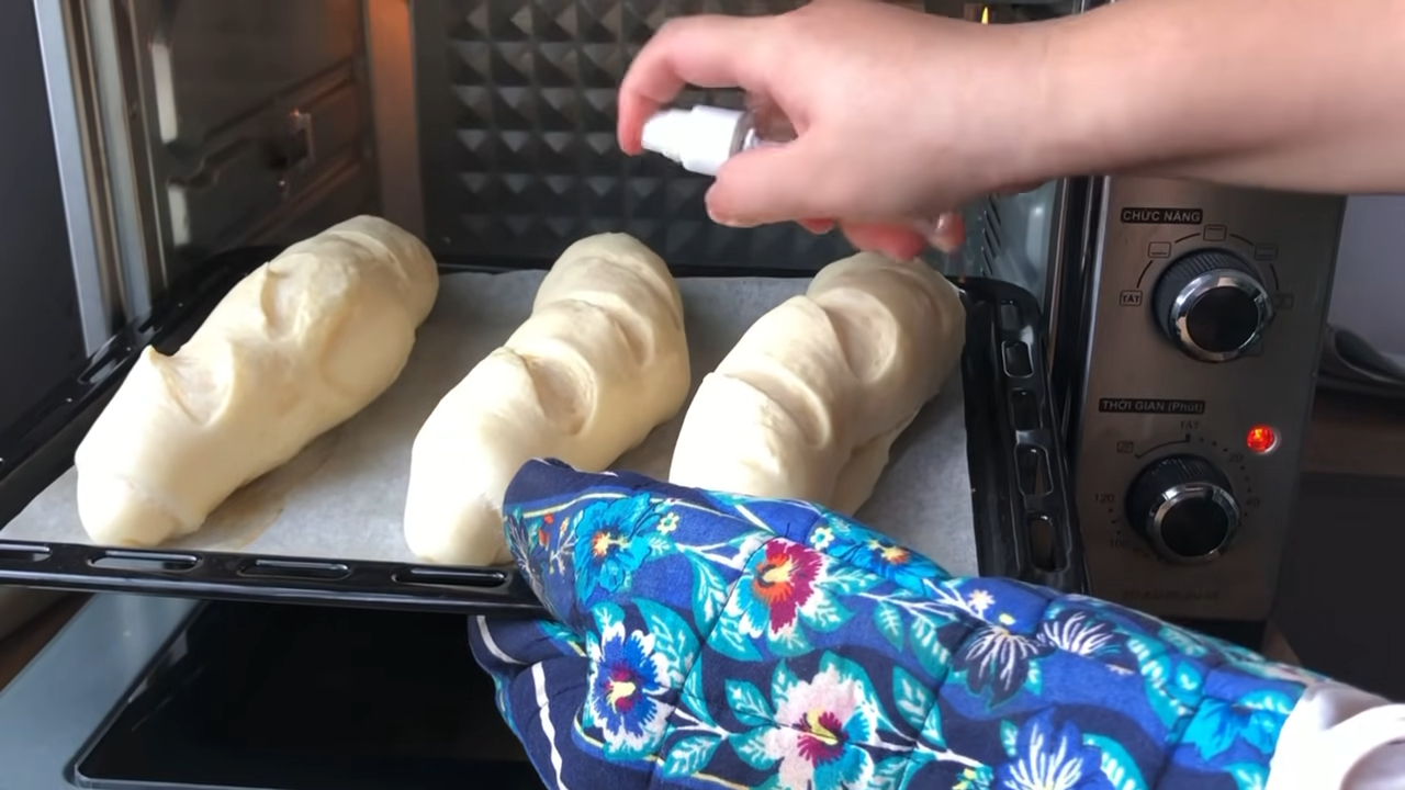 Sau khi bột nở đạt yêu cầu, chia bột thành từng phần nhỏ và tạo hình ổ dài đặc trưng. Tiếp tục ủ thêm một lần nữa để đảm bảo bánh nở đều trước khi nướng. Trước khi đưa vào nướng, rạch vài đường trên bề mặt bánh để bánh nở đẹp và tạo hình đặc trưng cho ổ bánh mì Việt Nam.