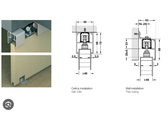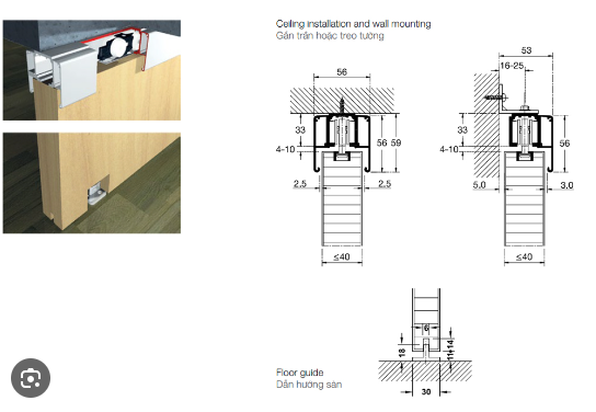 - Dẫn hướng: Dẫn hướng là bộ phận giúp cửa lùa di chuyển ổn định.