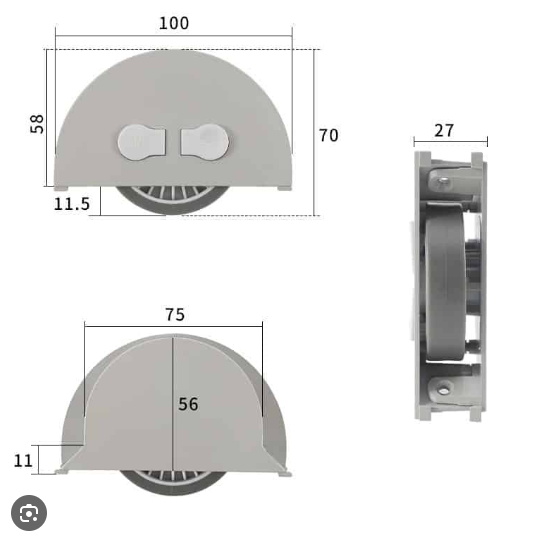 - Bánh xe: Bánh xe là bộ phận giúp cửa lùa di chuyển trên ray treo.