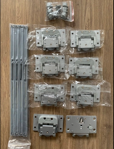 Bộ phụ kiện cho thanh ray trượt cửa lùa 120P, độ mở rộng 681mm bao gồm các thành phần sau: