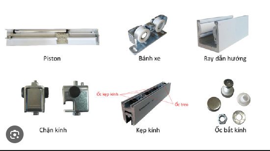 - Kẹp kính: Kẹp kính là bộ phận giúp cố định kính trên cửa lùa.