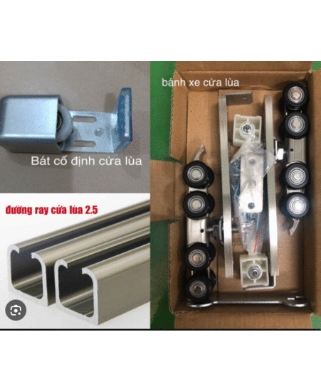Phụ kiện cửa lùa ray 1.5 mét là một bộ sản phẩm gồm nhiều chi tiết khác nhau, được sử dụng để lắp đặt cửa lùa ray 1.5 mét. Bộ sản phẩm này thường bao gồm các chi tiết sau: