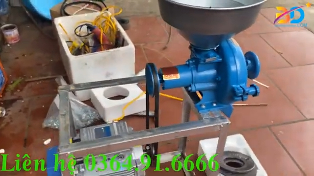 Bên cạnh đó, đơn vị cũng cung cấp bộ khung máy kèm đầu nghiền, dây curoa và puly để khách hàng chỉ cần lắp thêm mô tơ là có thể sử dụng ngay. Giá của bộ khung kèm đầu nghiền khoảng 2.300.000 đồng và cũng được tặng kèm một bộ đá nghiền đi kèm.