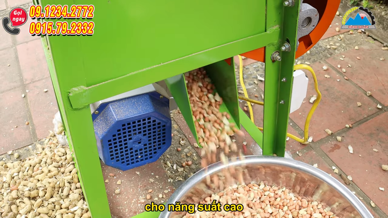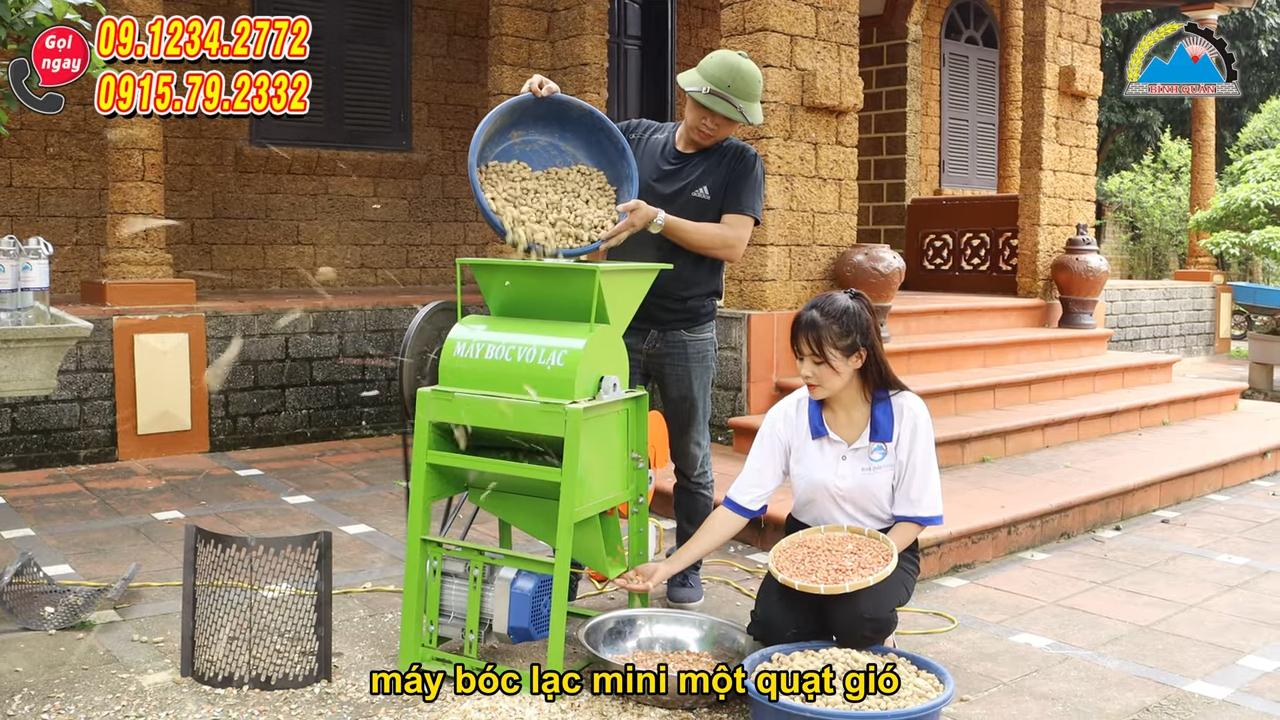 Giới thiệu đến bà con một chiếc máy rất tiện ích, giúp bà con bóc vỏ lạc một cách nhanh chóng, không tốn sức và không bị đau tay. Chỉ cần một người vận hành là đã có thể bóc được từ khoảng 200 đến 300 kg lạc mỗi giờ.