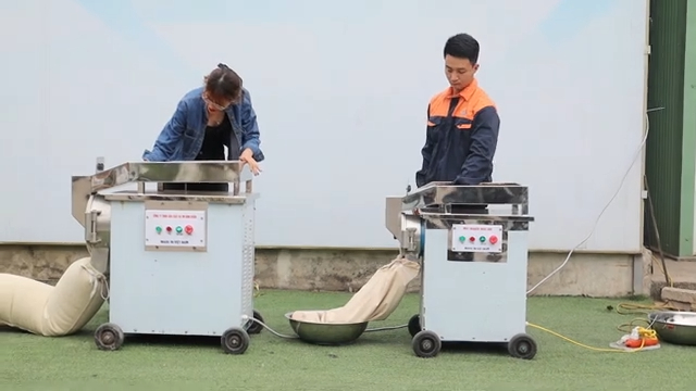 Trước khi tìm hiểu về mức giá của từng dòng sản phẩm, chúng ta có thể hình dung rõ hơn về khả năng hoạt động của hai dòng máy này thông qua quá trình vận hành thực tế. Khi máy hoạt động, nguyên liệu được đưa vào phễu nạp, sau đó hệ thống búa nghiền bên trong sẽ tiến hành nghiền nhỏ và đưa bột qua mặt sàng để tạo ra thành phẩm có độ mịn đồng đều. Với thiết kế bằng inox chắc chắn, máy vừa đảm bảo độ bền cao vừa đảm bảo an toàn vệ sinh trong quá trình chế biến thực phẩm.