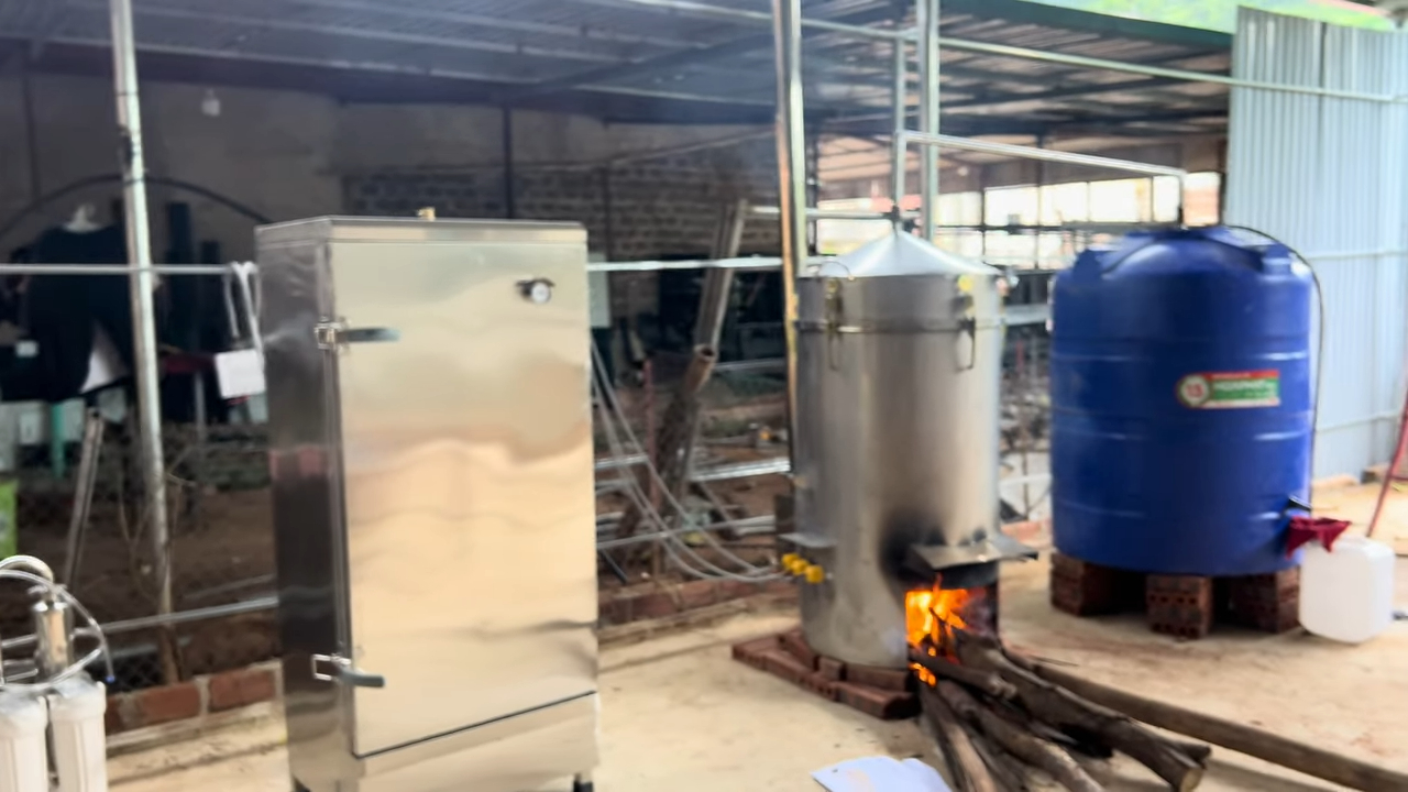 Toàn bộ combo nồi hơi nấu rượu bằng củi kết hợp điện 3 pha gồm nồi nấu rượu, tủ nấu cơm, máy lọc rượu và các bộ phận phụ trợ, tạo hệ thống hoàn chỉnh. Thiết bị giúp các hộ gia đình hoặc cơ sở nấu rượu vận hành thuận tiện và nâng cao hiệu quả sản xuất, nấu rượu nhanh chóng và tiết kiệm củi.