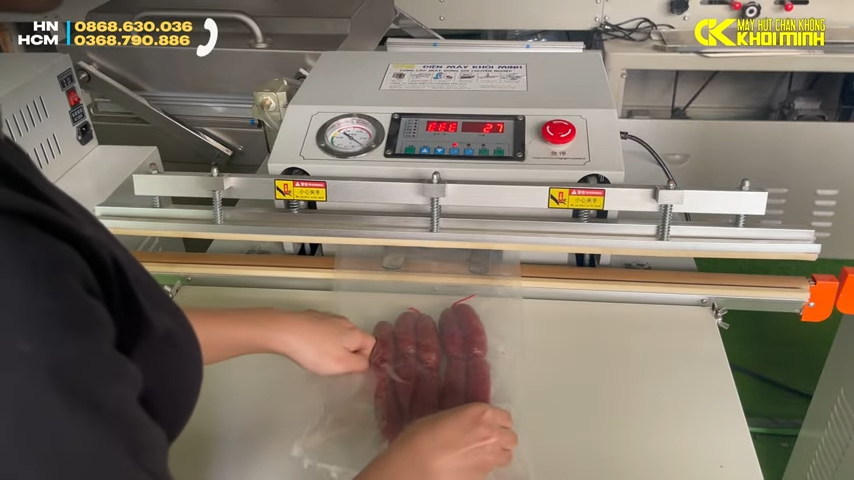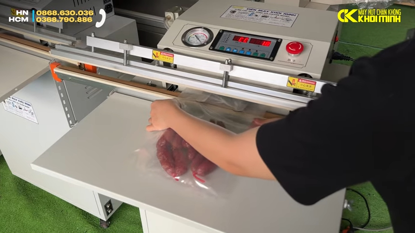 Trong quá trình hoạt động, anh chị có thể quan sát đồng hồ áp suất. Khi kim đồng hồ đạt đến vùng màu xanh, điều đó có nghĩa là áp suất chân không đã đạt mức tốt, túi đã được hút gần như hết không khí.