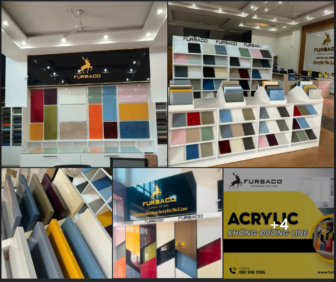 - Bề mặt Acrylic: Acrylic là loại nhựa cao cấp, cấu tạo gồm lớp lõi ABS và bề mặt Acrylic. Tấm Acrylic có độ dày từ 0,8mm đến 1mm, được sản xuất bằng công nghệ ép nhựa hiện đại. Nhờ sở hữu bề mặt bóng gương, sang trọng và tinh tế, Acrylic đang rất được ưa chuộng trong sản xuất nội thất cao cấp, đặc biệt là tủ bếp và tủ áo. Tuy nhiên, Acrylic chỉ thích hợp cho mặt đứng của tủ, không phù hợp với các mặt nằm ngang do hạn chế về độ chịu lực. Khi dán Acrylic, cần sử dụng keo chuyên dụng như Pilla để tránh tình trạng bong tróc và gợn sóng, đảm bảo độ bền và tính thẩm mỹ lâu dài.