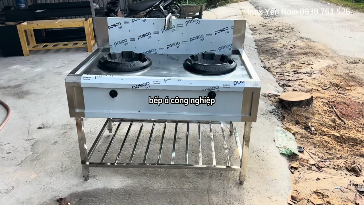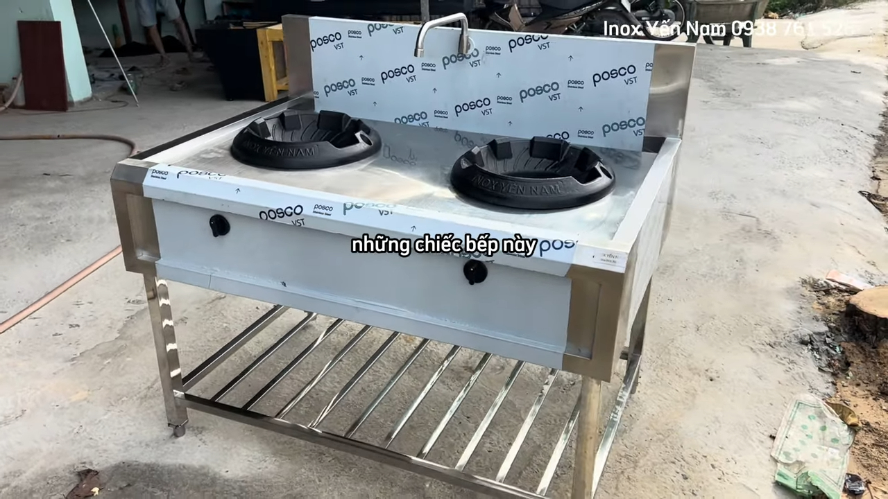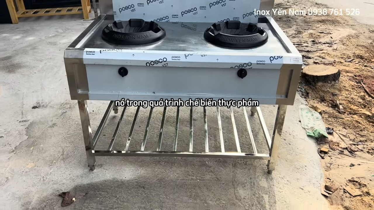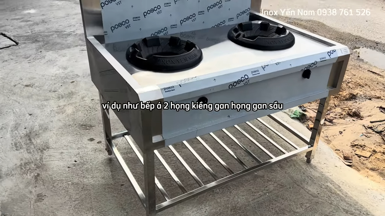 Bếp Á 2 họng gang xào công nghiệp inox chống gỉ dễ vệ sinh