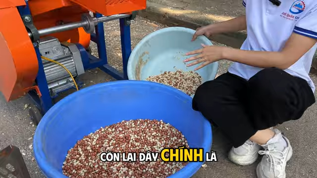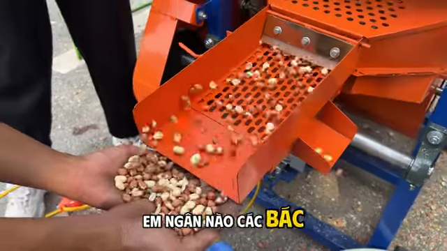 Máy bóc vỏ lạc hai quạt gió của Bình Quân là một thiết bị rất tiện lợi, giúp bà con bóc tách vỏ lạc nhanh chóng và hiệu quả. Khi máy hoạt động, lạc được đưa vào cửa nạp phía trên, sau đó hệ thống bên trong sẽ tiến hành bóc tách vỏ. Thành phẩm sau khi bóc được tách khá sạch, phần lớn là nhân lạc nguyên hạt, không để sót nhiều vỏ. Những hạt lạc bị vỡ hoặc lạc lép sẽ được phân riêng ra một cửa khác nhờ hệ thống sàng rung đi kèm, giúp người dùng dễ dàng thu gom và phân loại.