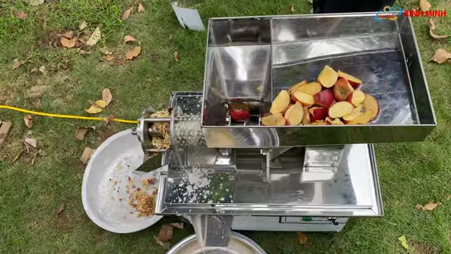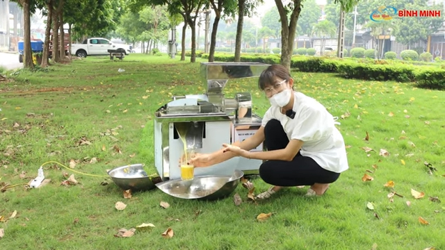 Khi đã chuẩn bị nguyên liệu xong, bạn có thể bắt đầu ép. Đầu tiên, cho nguyên liệu lên khay chứa, sau đó đặt một chậu hoặc bát hứng nước cốt ở phía dưới. Bật máy và xoay công tắc theo chiều kim đồng hồ để bắt đầu quá trình ép. Sử dụng môi gỗ hoặc tay để đẩy nguyên liệu xuống từ từ, không nên đẩy quá nhanh vì có thể làm tắc máy. Nước cốt sẽ ra từ một cửa, trong khi bã sẽ ra từ cửa khác.