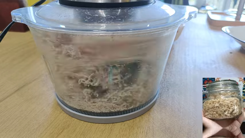 Sau khi chuẩn bị máy, cho phần thịt đã xé vào cối rồi lắp lưỡi silicone chuyên làm chà bông, đậy nắp lại và nhấn nút cho máy hoạt động. Khi máy chạy có thể thấy thịt được đánh tơi dần trong cối. Thông thường quá trình này mất khoảng từ 7 đến 10 phút là thịt đã tơi thành chà bông.