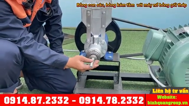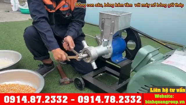 Khi thử máy, đổ một ít nước vào trục xoắn để làm trơn và làm sạch trục trước khi cho nguyên liệu vào. Sau đó cho nguyên liệu như gạo hoặc ngô vào phễu nạp, bắt đầu vận hành từ từ với lượng ít để kiểm tra chất lượng bỏng đầu ra. Khi bỏng đã nổ đều và chín, tăng lượng nguyên liệu vào máy. Nếu bỏng còn sống hoặc chưa nở đều, tạm dừng cấp nguyên liệu vài giây để máy tăng nhiệt, sau đó tiếp tục.