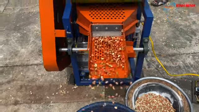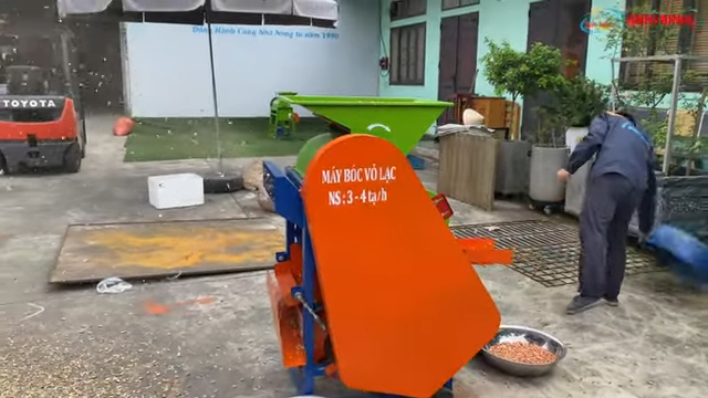 Khi máy đã hoạt động ổn định, bà con đổ lạc vào phễu nạp và điều chỉnh cửa cấp liệu để lạc rơi xuống buồng làm việc. Máy sẽ tiến hành bóc vỏ lạc với năng suất lớn, có thể đạt từ 3 đến 4 tạ mỗi giờ. Trong quá trình máy hoạt động, người sử dụng hầu như không cần thao tác nhiều mà chỉ cần theo dõi hoạt động của máy và bổ sung nguyên liệu khi gần hết. Điều này giúp giảm đáng kể công sức lao động so với phương pháp bóc lạc thủ công.