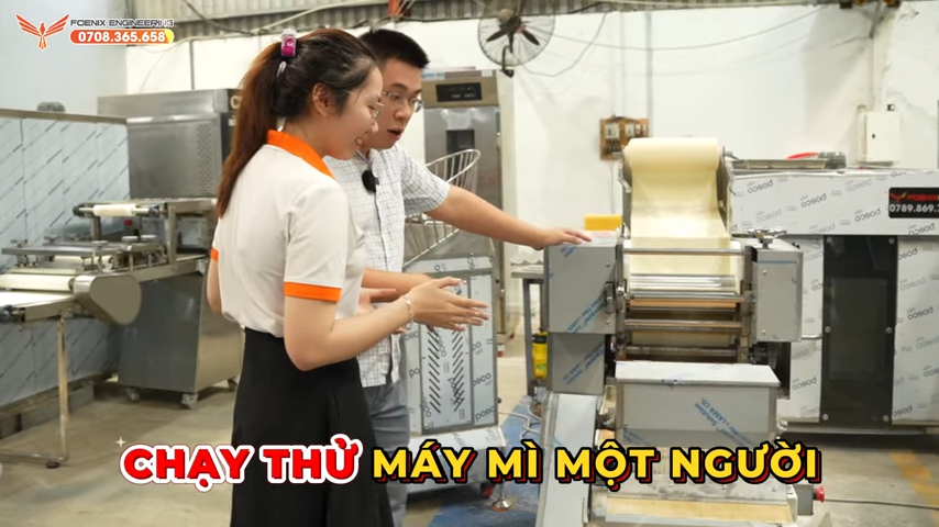 Thông thường, khách hàng chỉ cần chuẩn bị sẵn nguyên liệu như bột mì, trứng hoặc các nguyên liệu dùng để làm mì rồi mang đến xưởng sản xuất. Tại đây, đơn vị cung cấp máy sẽ trực tiếp vận hành máy cùng khách hàng để kiểm tra toàn bộ quy trình làm mì. Người mua có thể quan sát cách máy trộn bột, cán bột và tạo sợi mì để đánh giá hiệu quả thực tế của thiết bị. Việc trải nghiệm trực tiếp giúp khách hàng hiểu rõ khả năng hoạt động của máy cũng như chất lượng thành phẩm trước khi quyết định đầu tư. Trong quá trình chạy thử, khách hàng cũng có thể yêu cầu điều chỉnh khuôn tạo sợi hoặc thay đổi độ dày của lá bột để phù hợp với nhu cầu sản xuất. Một số dòng máy hiện nay có thể làm được nhiều loại sản phẩm khác nhau như mì sợi, mì trứng hoặc lá hoành thánh, nhờ vậy người dùng có thể linh hoạt trong việc sản xuất và mở rộng thêm nhiều loại thực phẩm phục vụ kinh doanh.