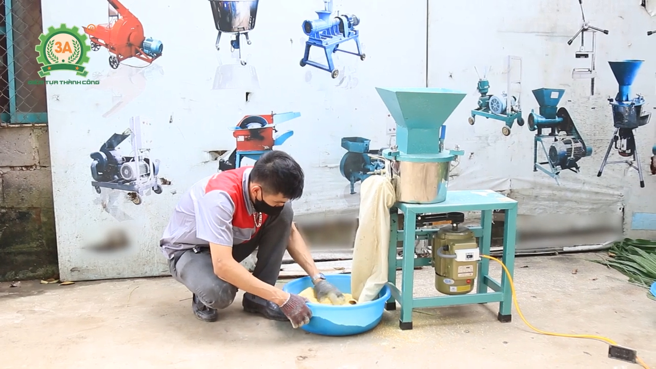 Quá trình vận hành máy khá đơn giản. Trước khi sử dụng, bà con nên cho máy chạy không tải khoảng 15 đến 20 giây để kiểm tra hoạt động. Sau đó, lần lượt cho nguyên liệu vào cửa nạp để tiến hành băm hoặc nghiền. Khi sử dụng chức năng nghiền bột khô, bà con cần buộc bao vào cửa xả để thu gom bột. Đối với chức năng băm nhỏ hoặc nghiền nát nguyên liệu tươi, bà con có thể điều chỉnh mặt sàng để đạt được kích thước sản phẩm mong muốn.