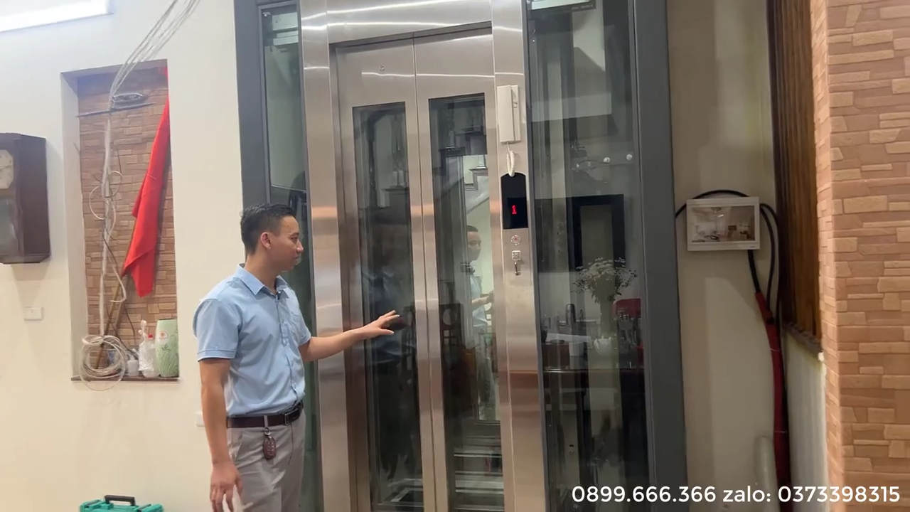 Xin giới thiệu mẫu thang máy gia đình quan sát (thang kính) tải trọng 450kg, lắp đặt trong khung thép sơn tĩnh điện sang trọng. Đây là giải pháp tối ưu cho những ngôi nhà ống có chiều ngang rộng, tận dụng vị trí đối diện thang bộ để tạo sự thông thoáng tối đa và nâng cao tính thẩm mỹ cho không gian sống. Dưới đây là chi tiết cấu tạo cùng các công nghệ an toàn nổi bật của dòng thang máy này.