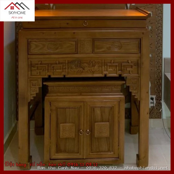 Ngoài gỗ gụ Lào, Skyhome còn cung cấp các tùy chọn khác như gỗ gõ đỏ với vân đẹp, độ bền cao, hoặc gỗ hương đá sang trọng, màu sắc ấm áp, hương thơm nhẹ nhàng, phù hợp với sở thích và phong cách thờ cúng của từng gia đình.
