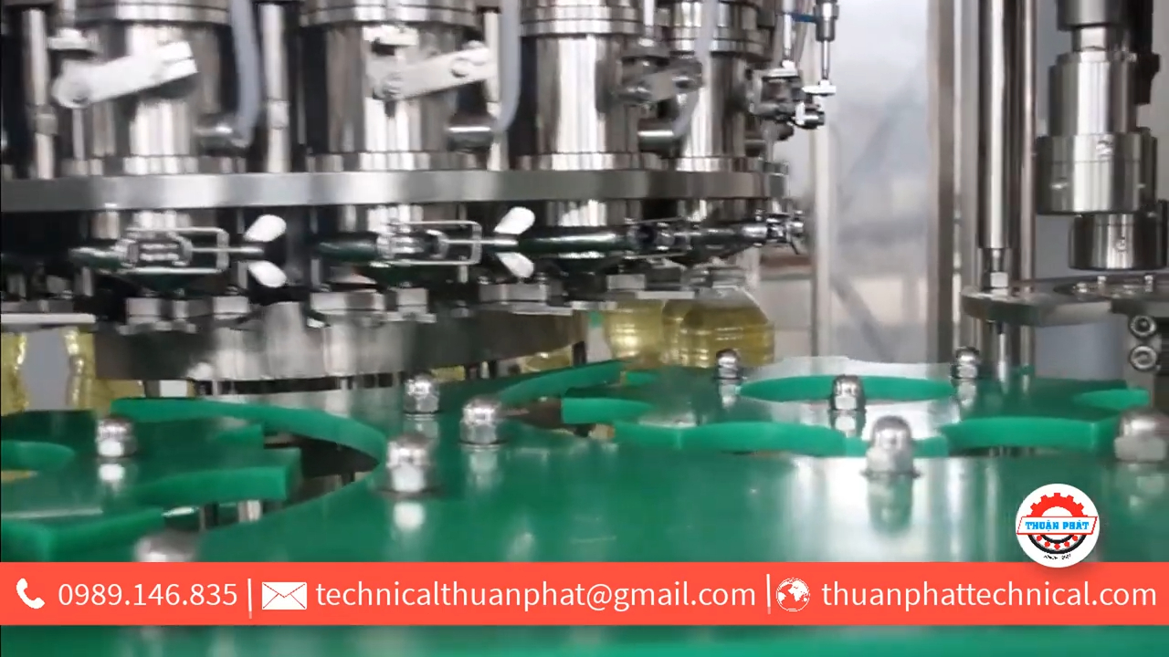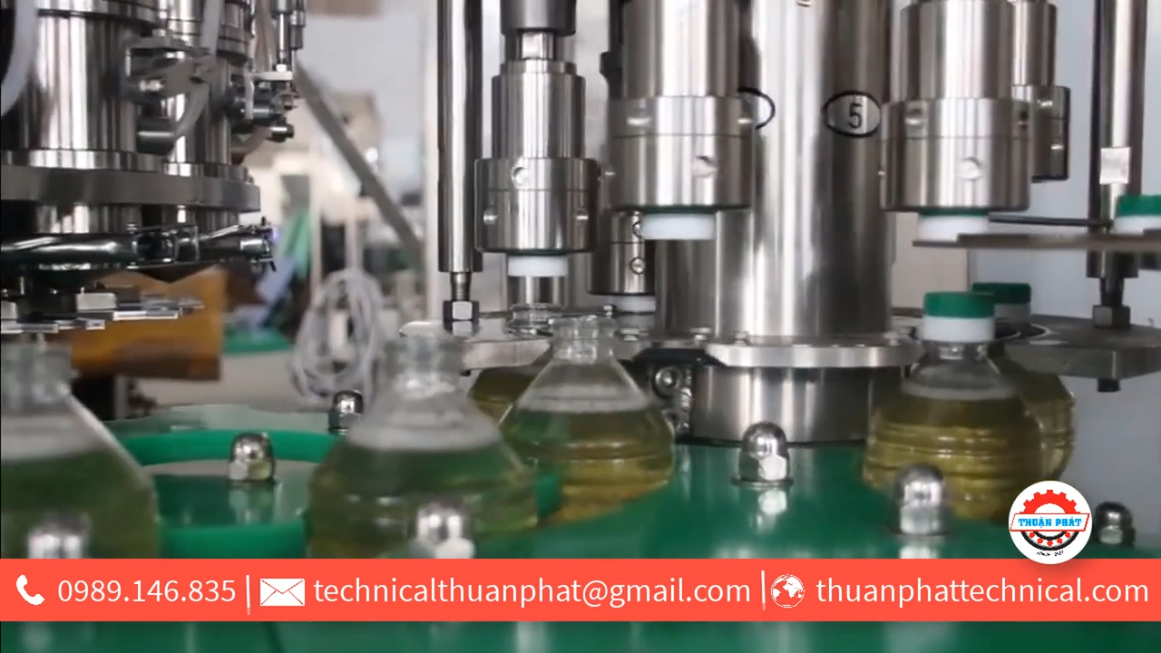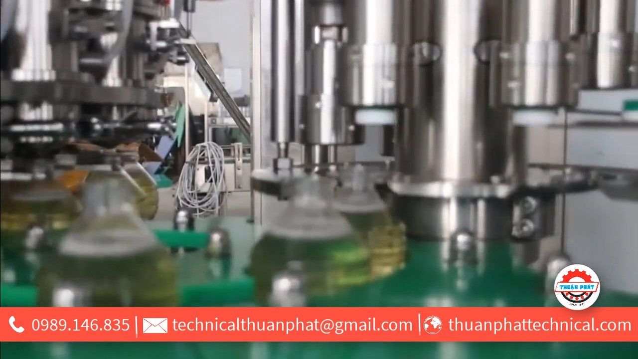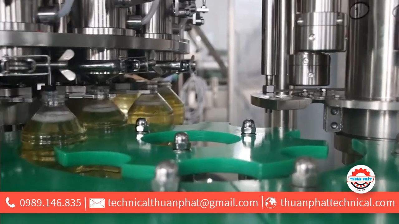 Trong quá trình vận hành, dây chuyền chiết rót dầu ăn tự động giúp tự động đưa chai vào vị trí chiết rót, thực hiện chiết rót dầu ăn vào chai và tiếp tục chuyển chai sang các công đoạn tiếp theo trong dây chuyền sản xuất.