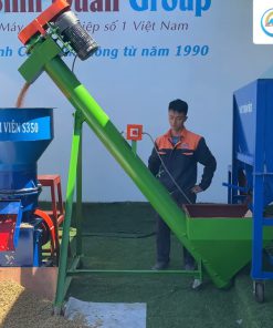 Sau khi trộn đều, nguyên liệu sẽ được bộ vít tải đưa vào toà nạp của máy ép cám viên S350. Bộ vít tải có thiết kế dạng phễu, giúp nguyên liệu tự động vào máy mà không cần thêm nhân công. Máy ép cám viên S350 sử dụng động cơ 22 kW, nguồn điện 3 pha 380V, giúp máy hoạt động mạnh mẽ, gia tăng khả năng nghiền ép nguyên liệu. Mỗi giờ máy cho năng suất từ 500 đến 700 kg nguyên liệu.