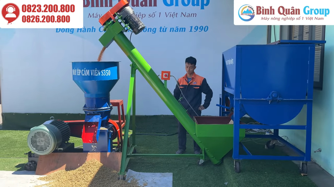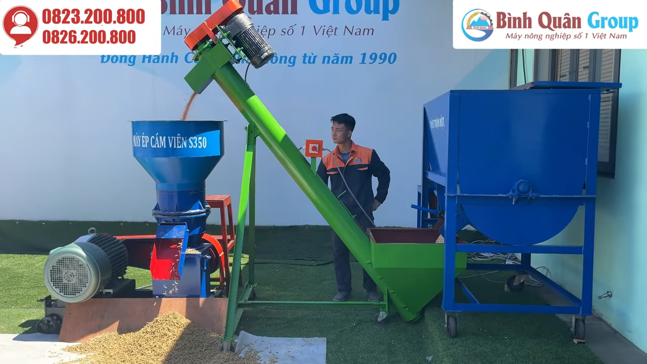 Với dây chuyền sản xuất cám viên này, bà con có thể sản xuất thức ăn cho đàn vật nuôi nhanh chóng, hiệu quả và tiết kiệm chi phí. Nếu quý vị quan tâm đến dòng sản phẩm này, hãy để lại ý kiến dưới video hoặc liên hệ trực tiếp qua hotline trên màn hình để được tư vấn và hỗ trợ nhanh nhất.