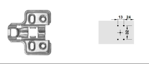 | Đế bản lề clip top 107 độ, lọt nửa, không giảm chấn | Hafele | 75.000 |