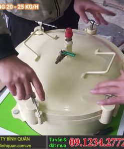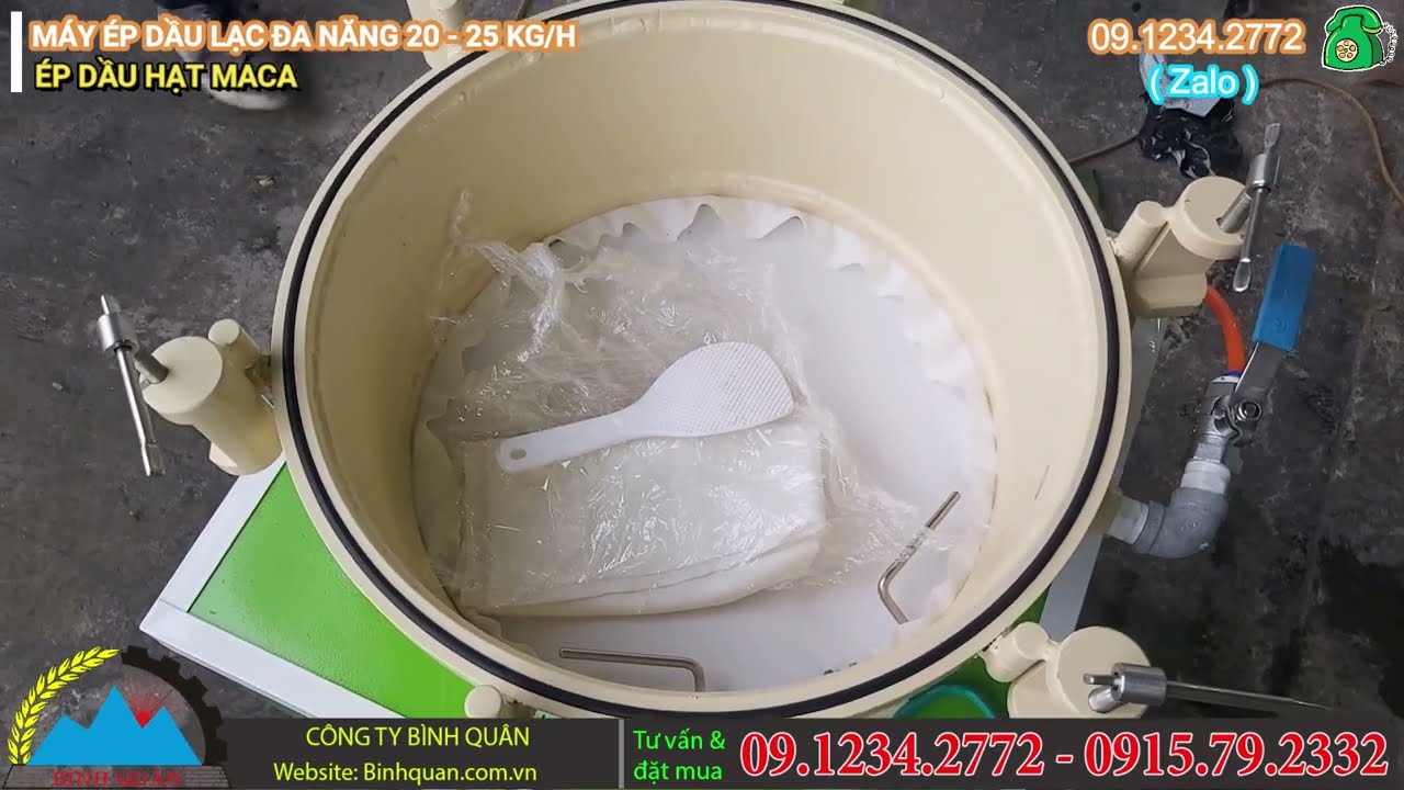 Sau khi ép xong, dầu thu được vẫn còn lẫn một số cặn nhỏ nên cần đưa sang máy lọc dầu. Máy lọc hoạt động bằng cách tạo áp lực để ép dầu đi qua lớp vải lọc, nhờ vậy cặn được giữ lại và dầu trở nên trong hơn. Công suất lọc của máy có thể đạt khoảng 8–10 lít mỗi lần lọc. Kết quả thử nghiệm cho thấy từ 5kg hạt mắc ca có thể thu được khoảng 2,5 lít dầu sau khi ép. Nếu tính thêm phần hao hụt trong quá trình vận hành thì tổng lượng dầu nguyên chất có thể đạt gần 3 lít.