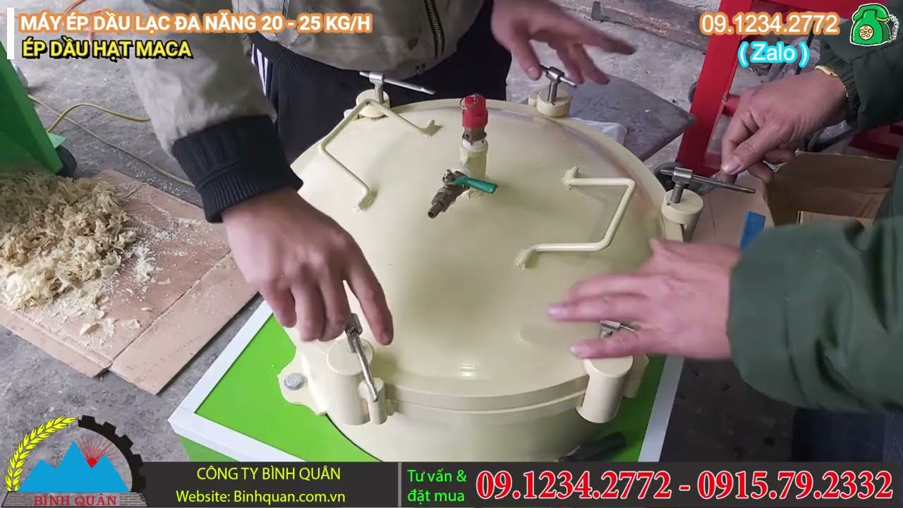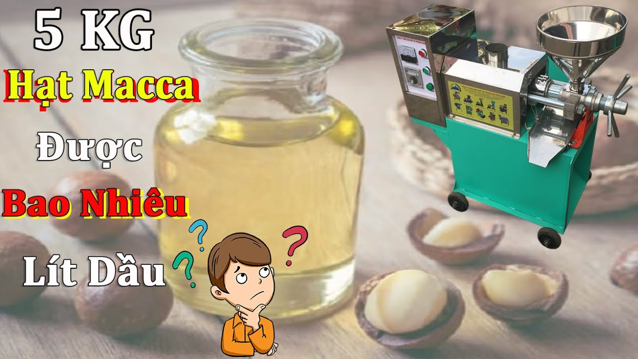 Thử nghiệm ép dầu thực vật từ hạt mắc ca để xem với 5kg nguyên liệu thì có thể thu được bao nhiêu dầu thành phẩm. Nguyên liệu sử dụng là 5kg hạt mắc ca đã được bóc vỏ và sơ chế nhỏ, giúp quá trình ép diễn ra nhanh hơn và tăng hiệu suất của máy. Bộ thiết bị được dùng gồm máy ép dầu đa năng có năng suất khoảng 20–25kg nguyên liệu mỗi giờ và máy lọc dầu để làm sạch dầu sau khi ép.