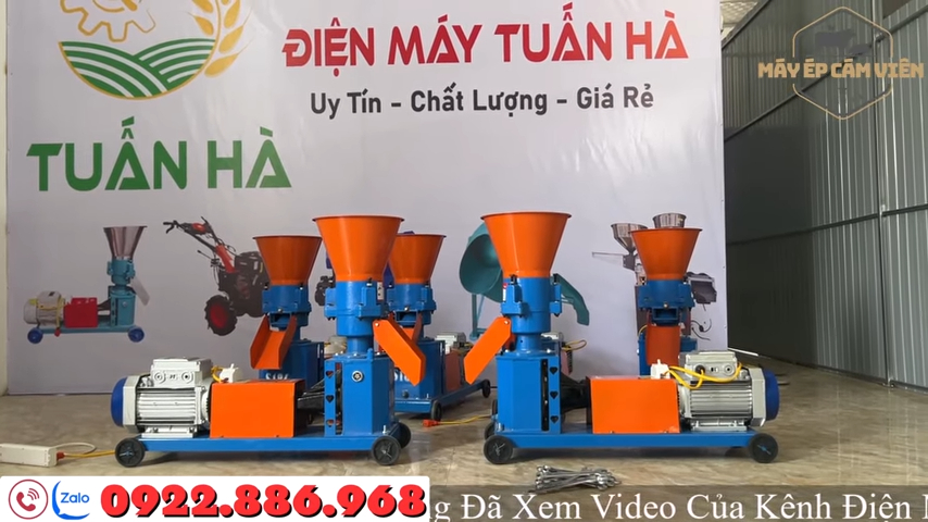 Nhân tiện nói về nguyên liệu, bên công ty cũng hướng dẫn luôn tỷ lệ phối trộn để bà con sử dụng hiệu quả. Đối với dòng máy ép cám viên điện 1 pha này, bà con nên dùng khoảng 40–50% cám bột, và đặc biệt chú ý độ ẩm nguyên liệu từ 7–15%. Cách đơn giản nhất là bà con lấy tỷ lệ 10kg nguyên liệu khô thì trộn thêm khoảng 1kg nguyên liệu ướt. Các nguyên liệu như cám, cua, cá, ốc, rau xanh… bà con đều có thể tận dụng sẵn tại nhà, phối trộn rồi cho trực tiếp vào máy để ép thành viên cám dinh dưỡng cho gà, vịt, lợn, trâu bò hoặc các loại vật nuôi khác. Như vậy bà con không cần mất thời gian nấu cám hay chuẩn bị thức ăn phức tạp. Ngoài ra, nếu không ép thành viên mà rải cám ra đất cho vật nuôi ăn thì rất dễ bị hao hụt, mất vệ sinh chuồng trại và lãng phí nguyên liệu. Vì vậy ép cám viên là giải pháp rất hiệu quả giúp bà con tiết kiệm chi phí thức ăn và giúp vật nuôi phát triển tốt hơn.