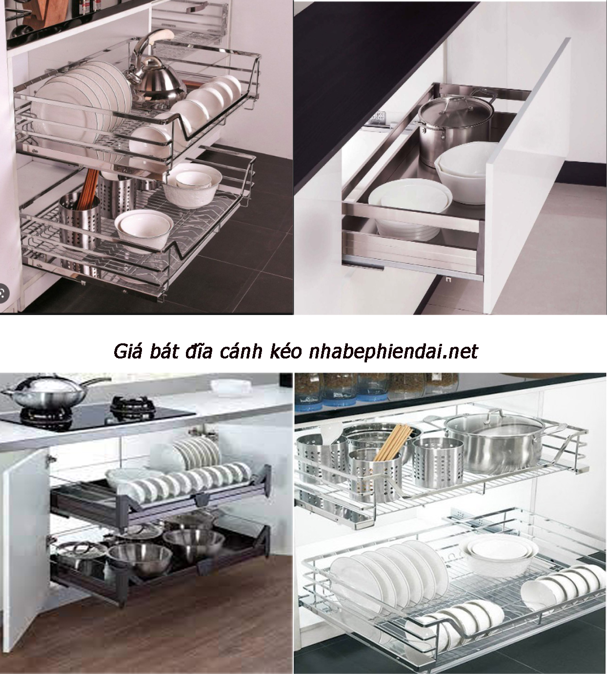 - Chiều rộng: Thông thường, giá bát đĩa cánh kéo có chiều rộng từ khoảng 30cm (12 inches) đến 90cm (36 inches) hoặc hơn, tùy thuộc vào kích thước của tủ bếp và không gian có sẵn.