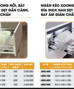 Giá bát đĩa inox hộp cánh kéo giảm chấn BX03.600-900