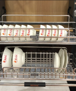 Giá bát đĩa nâng hạ, thường được gọi là giá úp bát đĩa tủ trên, là một sản phẩm quen thuộc trong tủ bếp hiện đại ngày nay. Nếu bạn đang cân nhắc một sản phẩm chất lượng, có thể cân nhắc sản phẩm giá bát đĩa nâng hạ Garis ML 06.70 V – một sản phẩm chất lượng cao và siêu bền. Sản phẩm này có thiết kế hình trái trám và dùng vật liệu inox 304 với bề mặt được điện hoá tráng bóng, tạo nên nét thẩm mỹ tinh tế và nhẵn mịn. Đặc biệt, sản phẩm được thiết kế với 2 ngăn kéo, cho phép bạn tối ưu diện tích và sắp xếp ngăn nắp các bát đĩa trong tủ bếp.