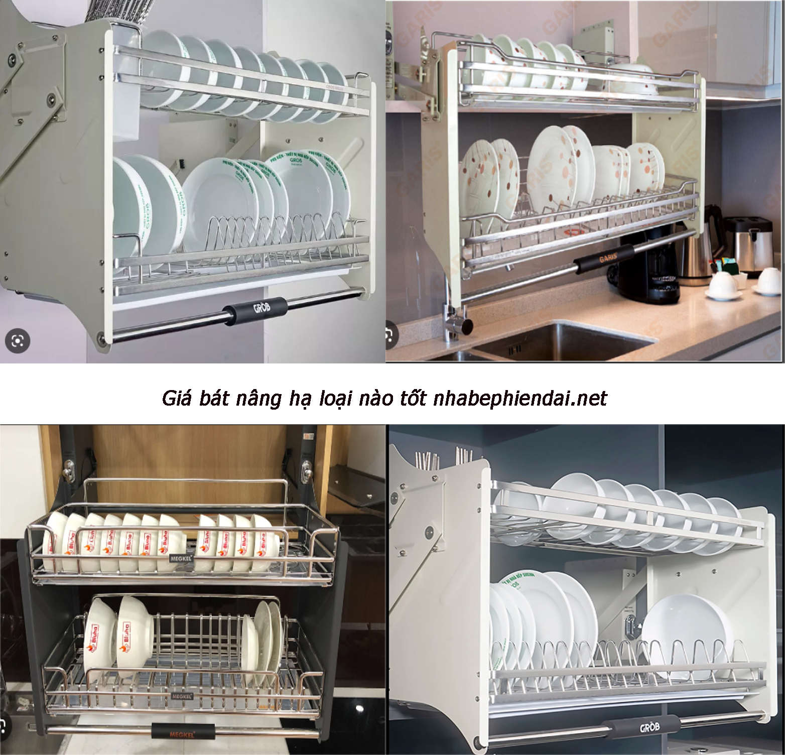Giá bát nâng hạ là một loại phụ kiện tủ nhà bếp giúp bạn dễ dàng lấy và cất trữ bát đĩa. Giá bát nâng hạ có thể được làm bằng inox hoặc plastic, có nhiều kích thước và loại chất liệu khác nhau để phù hợp với nhu cầu sử dụng của từng gia đình.