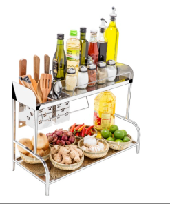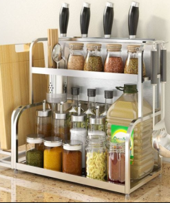 Giá để đựng gia vị 2 tầng Inox 304 là một sản phẩm phụ kiện nhà bếp đa năng dùng để chứa đựng gia vị. Sản phẩm có cấu tạo 2 tầng, giúp bạn đựng gia vị trở nên ngăn nắp và gọn gàng, giúp bạn nhanh chóng sắp xếp và sử dụng gia vị lúc cần thiết.