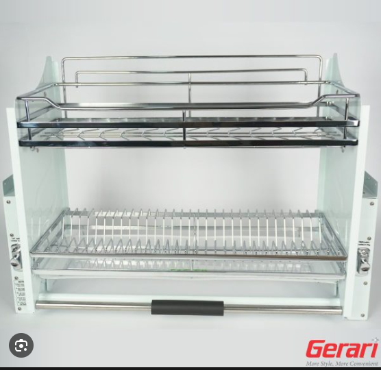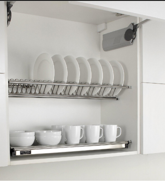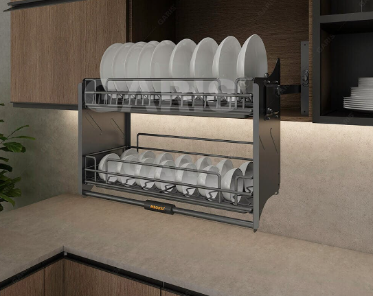 Giá nâng hạ bát đĩa là một sản phẩm thông minh giúp việc bảo quản và cất giữ bát đĩa trở nên dễ dàng và thuận tiện hơn bao giờ hết. Sản phẩm được thiết kế với chế độ nâng hạ giúp bạn dễ dàng lấy và cất trữ bát đĩa khi không phải khom xuống, và khay chứa nước phía dưới giúp hạn chế nước tràn ra nền nhà làm hư hại tủ bếp. Giá nâng hạ bát đĩa có nhiều kích cỡ khác nhau, phù hợp với nhiều kích thước tủ bếp theo sở thích riêng biệt của từng gia đình.