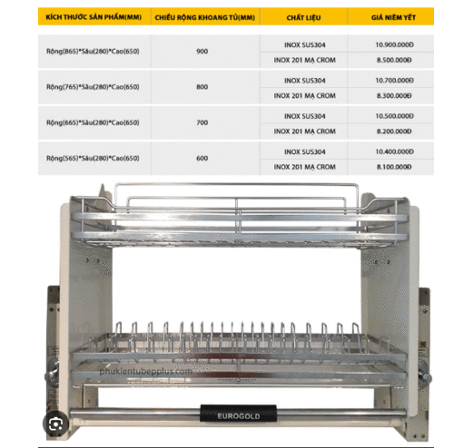 | Eurogold | Giá bát cố định 2 tầng thép phủ nano EVG2021 | 600, 700, 800, 900 | 3.487.000 |