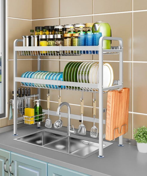 Sản phẩm được thiết kế với 2 tầng để tận dụng tối đa không gian, giúp việc sắp xếp đồ dùng trong nhà bếp trở nên gọn gàng và tiện lợi hơn.
