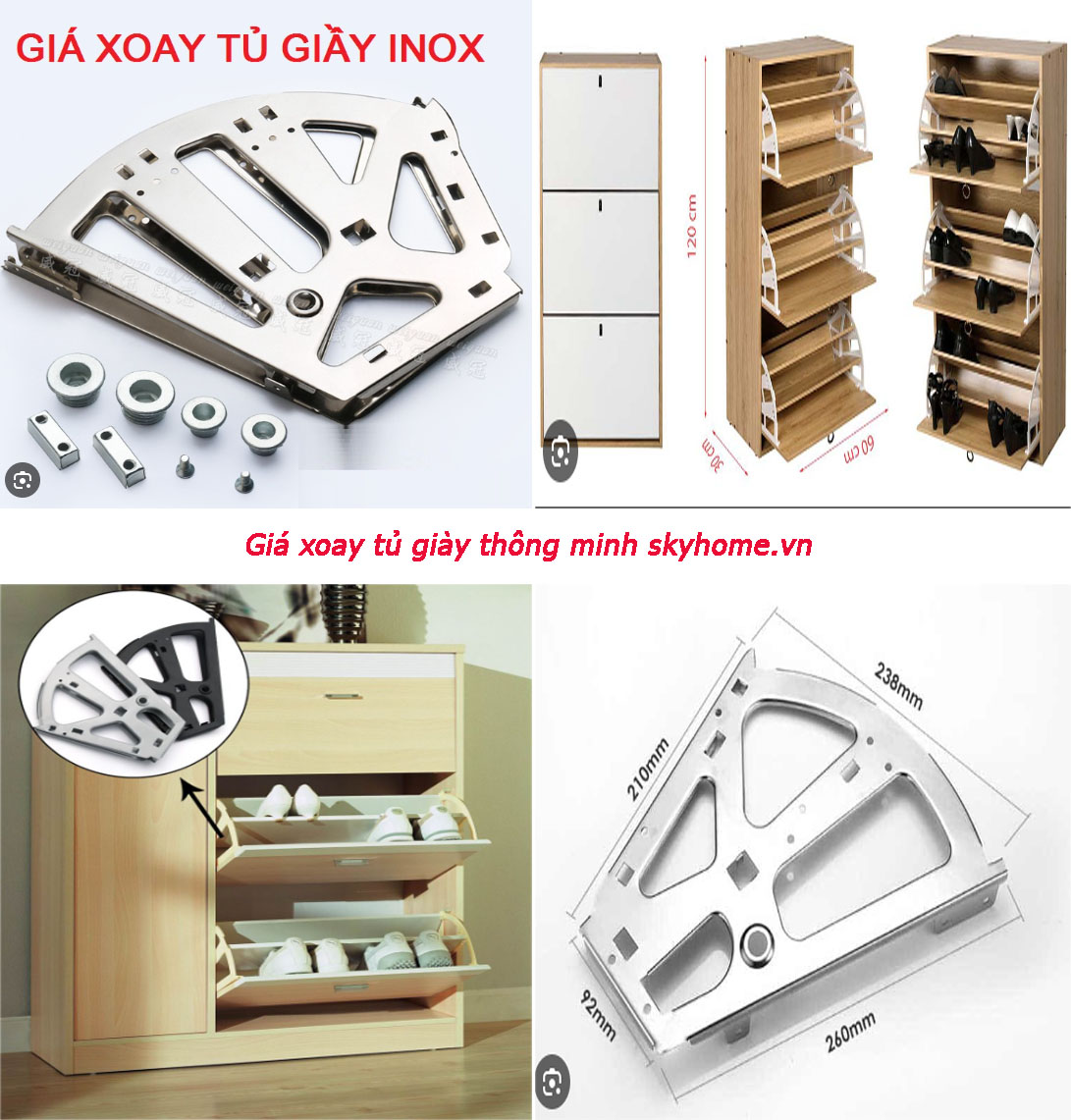 Giá xoay tủ giày thông minh là một loại phụ kiện nội thất giúp lưu trữ giày dép một cách gọn gàng, ngăn nắp. Giá xoay có thể được lắp đặt trong tủ giày hoặc trong phòng khách, phòng ngủ,…