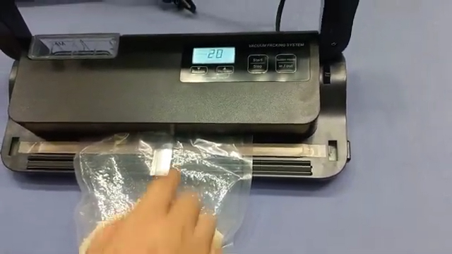 Trước khi sử dụng máy, người dùng có thể quan sát các thông số hiển thị trên màn hình để cài đặt thời gian hàn miệng túi phù hợp. Nếu sử dụng các loại túi dày thì nên tăng thời gian hàn lên khoảng 6 đến 7 giây, còn với các loại túi hút chân không thông thường thì chỉ cần cài đặt khoảng 4 đến 5 giây là đủ. Ngoài ra máy còn cho phép cài đặt thời gian hút chân không tùy theo loại thực phẩm và kích thước túi sử dụng. Ví dụ với túi thực phẩm nhỏ như túi gạo hoặc túi thực phẩm khô thì có thể cài đặt thời gian hút khoảng 10 đến 12 giây, còn đối với túi lớn hoặc chứa nhiều thực phẩm hơn thì nên tăng thời gian hút để đảm bảo hút kiệt không khí trong túi. Khi tiến hành hút chân không, người dùng chỉ cần đặt miệng túi vào đúng vị trí, dùng hai tay ấn nắp máy xuống cho đến khi nghe tiếng khóa, sau đó nhấn nút Start để máy bắt đầu hoạt động. Máy sẽ tự động hút không khí ra khỏi túi và sau khi kết thúc quá trình hút sẽ tự động chuyển sang chế độ hàn miệng túi. Khi quá trình hàn hoàn tất, máy sẽ phát tín hiệu báo và người dùng chỉ cần mở nắp máy để lấy túi thực phẩm ra ngoài.